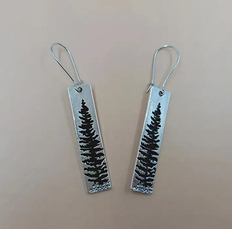 Rectangle Vintage Tree Earrings