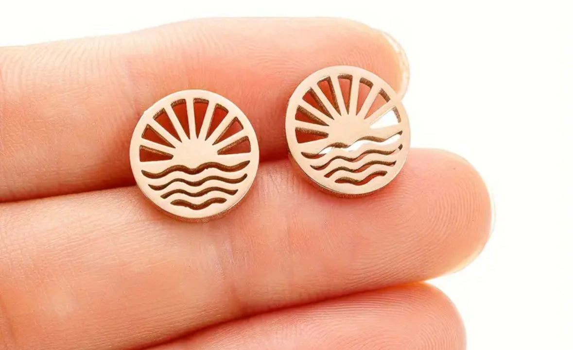Rose Gold Stainless Steel Sunrise/Wave Earrings
